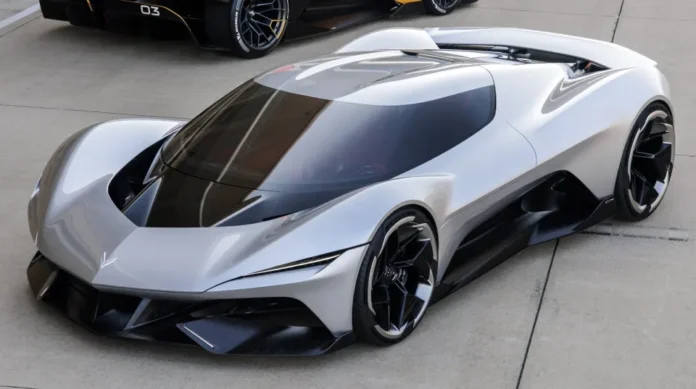 La libertad sin límites del diseño se nota en el acceso al habitáculo. Toda la cabina bascula hacia delante: parabrisas, techo y lo que normalmente sería el capó, todo incluido. Y deja a la vista un cockpit con dos asientos totalmente separados… y el del conductor con lo que parece una suerte de Halo, quizás para recordarnos que General Motors entra en Fórmula 1, aunque sea con Cadillac.