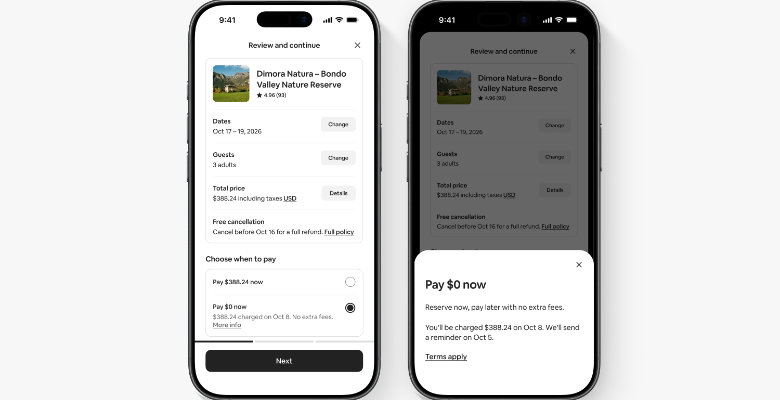 La opción Reserva ahora, paga después se suma a otras alternativas de pago flexibles que ofrece Airbnb para que viajar sea más asequible, como Paga una parte ahora y otra después, que permite abonar una parte al momento de reservar y el resto cuando se acerca la fecha de llegada.