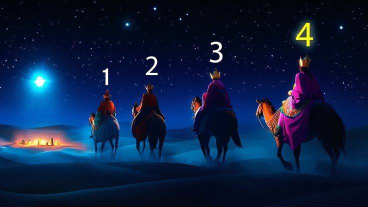 Se cuenta que había un cuarto Rey Mago, que también vio brillar la estrella sobre Belén y decidió seguirla. Como regalo pensaba ofrecerle al Niño un cofre lleno de perlas preciosas. Sin embargo, en su camino se fue encontrando con diversas personas que iban solicitando de su ayuda.