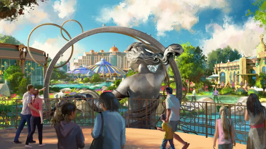 El Celestial Park será el primer mundo que los visitantes verán en el nuevo parque temático. Contará con impresionantes jardines, canales de agua y senderos con una arquitectura inspirada en la astronomía y astrología. Una propuesta que buscará estimular la imaginación gracias a los espectáculos musicales de fuentes de agua.