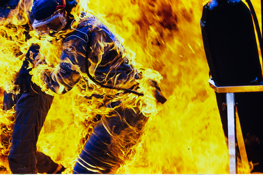 «Pero el tercer cuadro era el que se ha hecho muy famoso – que es básicamente él completamente envuelto en llamas, alejándose de allí claramente. ¡Parece robado de una película! «