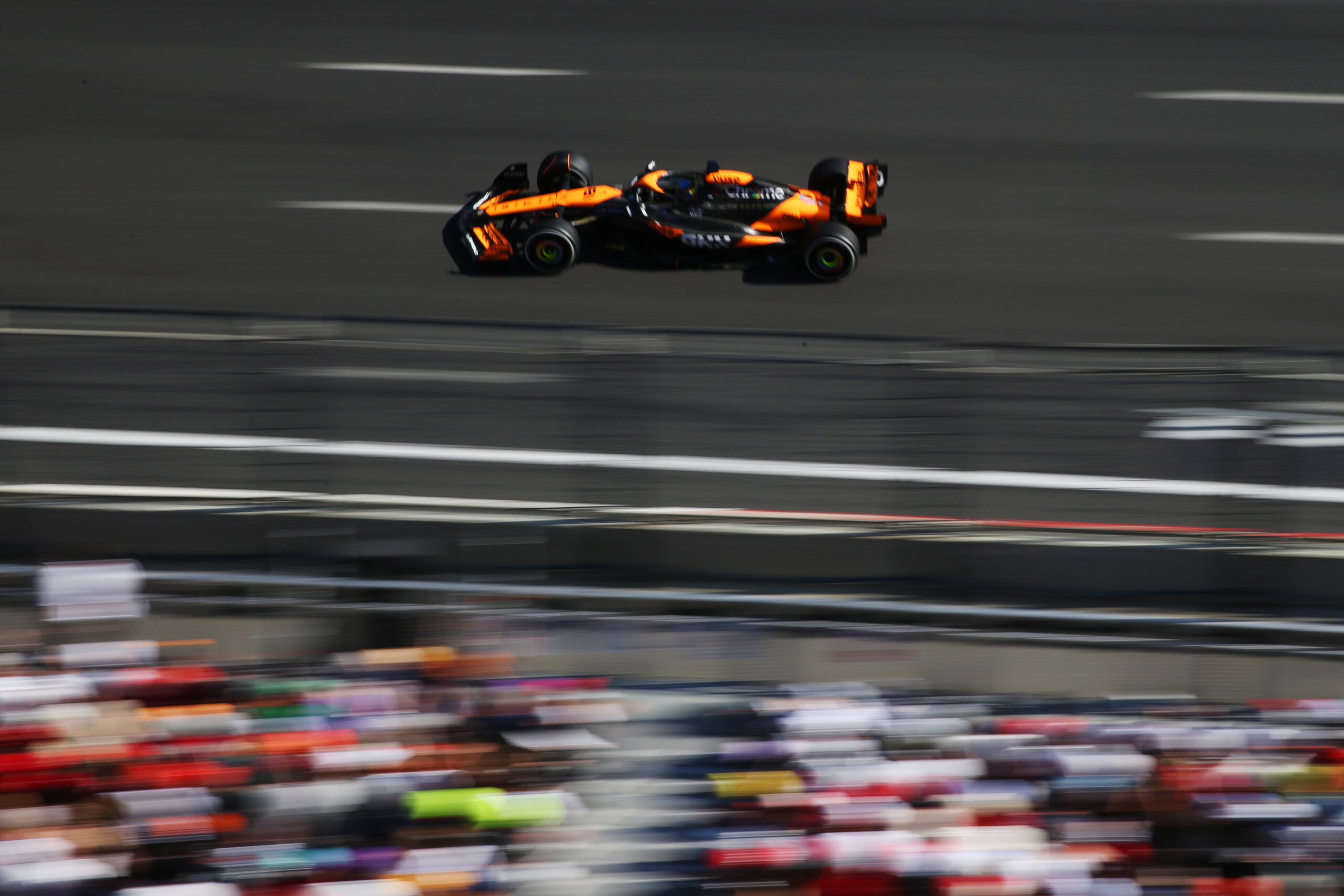 Sorprendentemente, Piastri no sólo ha sido capaz de adelantar a Leclerc, sino que ha podido aferrarse a la primera posición y el monegasco no terminaba de encontrar la manera de responderle. Mientras tanto, Carlos Sainz adelantaba a Alexander Albon y Lando Norris para escalar a la cuarta posición y Max Verstappen intentaba hacer lo mismo, pero el británico de McLaren se lo ha puesto muy difícil a su rival por el título.