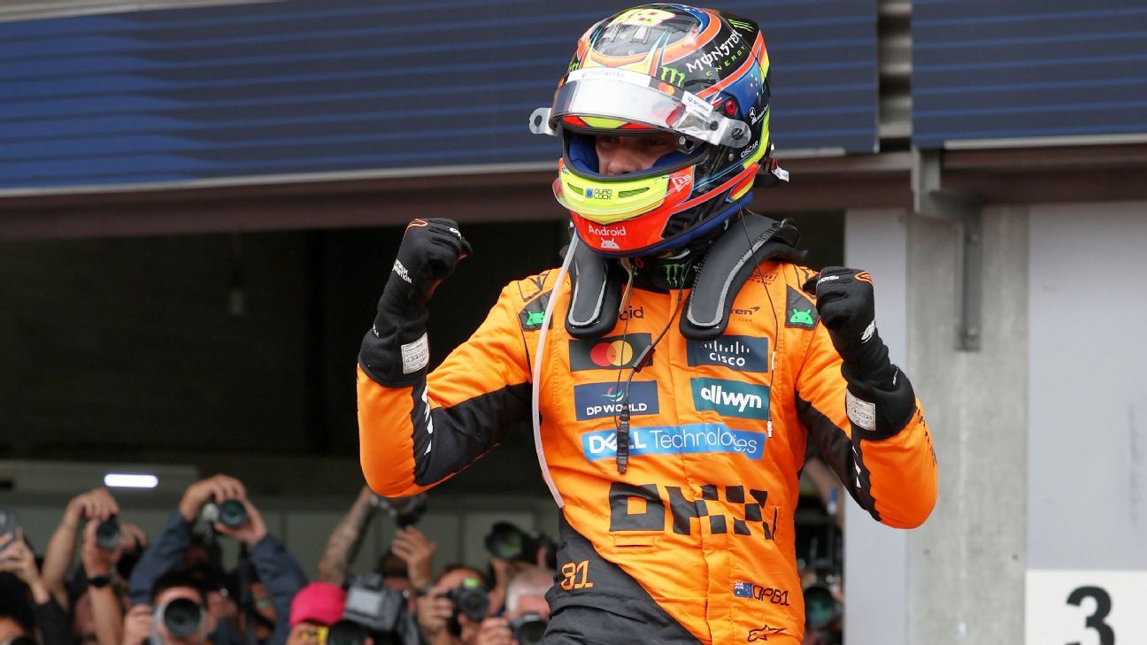 En esas diez últimas vueltas, Lando Norris no ha sido capaz de plantar batalla a su compañero de equipo e incluso ha cometido más errores, así que Oscar Piastri ha cruzado la línea de meta en la primera posición y ha logrado su octava victoria en la Fórmula 1. Charles Leclerc ha completado el podio y Max Verstappen ha finalizado cuarto, por delante de un George Russell que, visto el rendimiento de Mercedes este fin de semana, al menos ha cosechado una quinta posición.