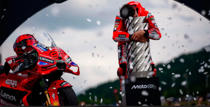 Claudio Domenicali, CEO de Ducati: Con el título de Equipos, Ducati completa la Triple Corona: un prestigioso logro obtenido en un Campeonato que representa el más alto nivel de innovación y tecnología en el mundo de las dos ruedas. Un hito que confirma la excelencia de nuestro proyecto de carreras y nos llena de orgullo, junto con todos nuestros fans. Marc Márquez ha tenido un rendimiento sobresaliente este año, y la valiosa contribución de Francesco Bagnaia ha sido clave para asegurar las coronas de Equipos y Constructores. Estos logros solo son posibles gracias al arduo trabajo de todo nuestro equipo y al valioso apoyo de nuestros socios. Un agradecimiento especial a Lenovo y su tecnología que lidera la innovación y contribuye a un deporte más rápido, seguro y emocionante juntos hemos escrito otro capítulo inolvidable en la historia de Ducati en MotoGP.