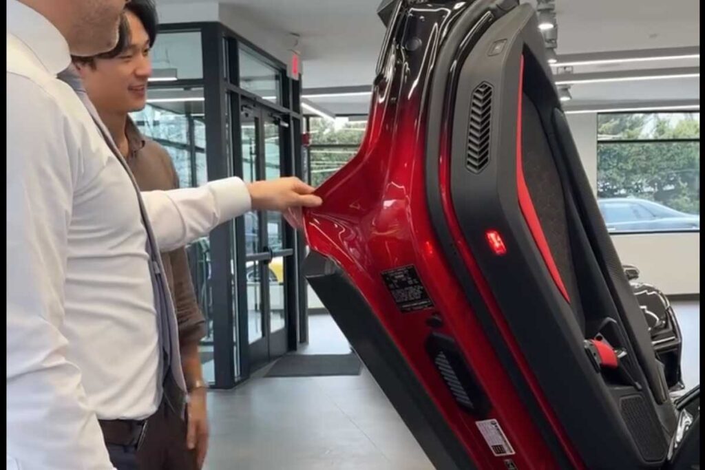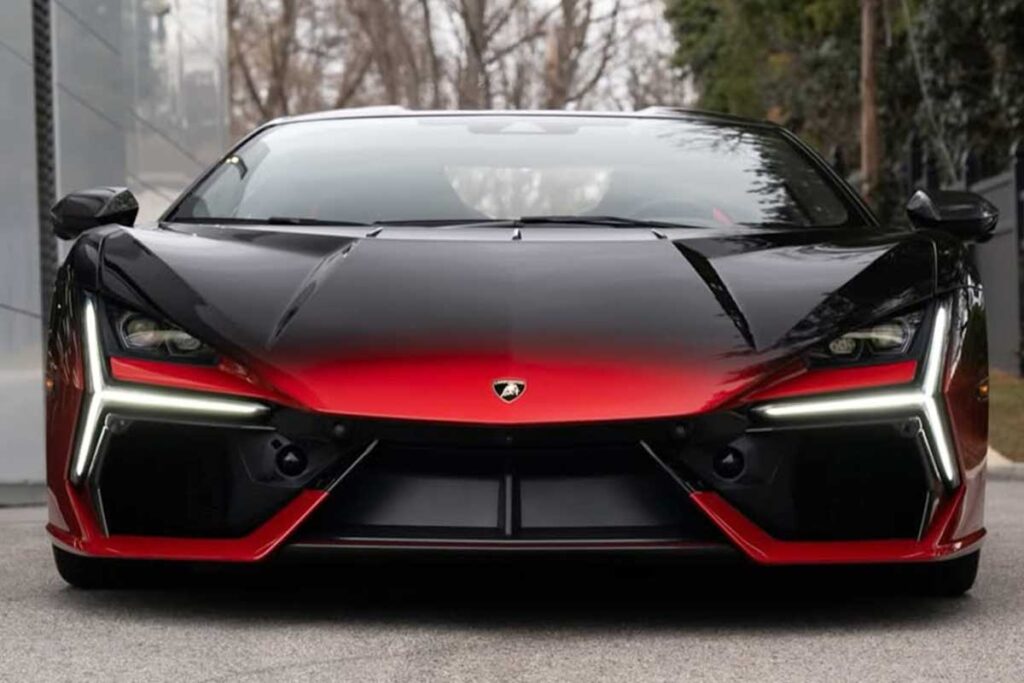 A primera vista, este Revuelto llama inmediatamente la atención por su espectacular tonalidad. No es ni un simple rojo ni un clásico negro, sino una compleja gradación entre el Rosso Bia y el Nero Granatus. Una transición perfectamente controlada, fluida, casi orgánica. Este tipo de acabado no es una técnica de pintura tradicional. Requiere un trabajo artesanal largo, preciso y, sobre todo, extremadamente raro. Cada capa, cada matiz, cada transición se controla a mano. El resultado es único y, sobre todo, imposible de reproducir de forma idéntica. Otro detalle que distingue a este Revuelto es que es el primer Revuelto que se entrega en Estados Unidos con un difusor trasero pintado. Una elección audaz, dado que el difusor suele dejarse inacabado o en carbono visto para enfatizar su función aerodinámica.