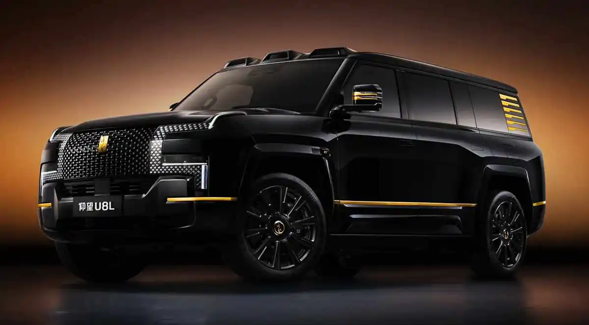 Uno de los detalles más llamativos del vehículo es el emblema frontal bañado en oro de 24 quilates, que sustituye al logo de cristal que lleva la U8 convencional. La U8L se puede obtener en colores negro o dorado y se apoya sobre unos enormes rines de 23 pulgadas, acercándose en dimensiones a modelos como la Cadillac Escalade, con el «plus» de tener una propuesta mucho más tecnológica y mayor nivel de lujo.