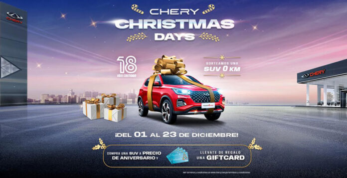 La magia de la Navidad llega este diciembre de la mano de Chery. Con motivo de sus 18 años de éxito ininterrumpido en Latinoamérica, la marca automotriz número uno en exportaciones por 21 años consecutivos y con más de 10 reconocimientos, se viste de fiesta con los Chery Christmas Days, una campaña especial para que todos puedan vivir un diciembre lleno de sorpresas, regalos y la posibilidad de llevarse a casa una camioneta Tiggo 4 Pro 0 KM.