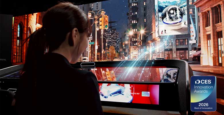 La exhibición presenta tres soluciones principales. Mobility Display Solution convierte el parabrisas en una interfaz inteligente que muestra información esencial de forma contextual y selectiva, e incluso genera experiencias visuales inmersivas durante la conducción autónoma. Automotive Vision Solution utiliza Vision AI para mejorar la seguridad y habilitar interacciones empáticas mediante el reconocimiento de miradas, gestos y estados de los ocupantes.