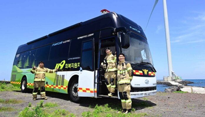 Hyundai Motor Group ha donado un innovador autobús de soporte con pila de combustible de hidrógeno a la Agencia Nacional de Bomberos de Corea para proporcionar a los bomberos un lugar donde recuperarse de las condiciones extremas que enfrentan diariamente al combatir incendios en el cumplimiento de su deber.