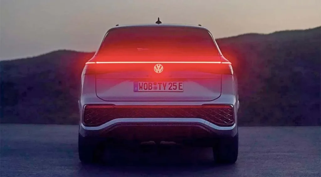 Vale la pena recordar que, aunque en Europa y China el Tiguan ya ha entrado en una nueva generación en 2023, en América del Norte todavía se comercializa la versión ampliada anterior del Allspace. Así las cosas, el fabricante ha revelado solo algunos teasers del Tayron europeo. Estos dejan entrever faros y parachoques originales. Así como una barra de luces traseras de una sola pieza, similar a la del nuevo Tiguan, pero con un relleno LED diferente.