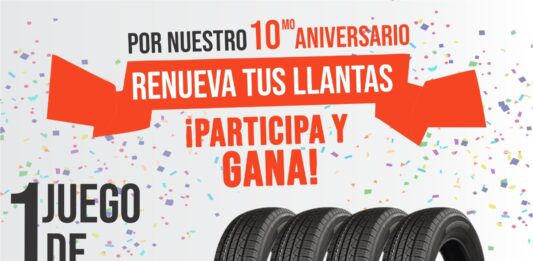 Con motivo de nuestro 10 aniversario, el comité editorial de www.sobreruedas.news sorteará un juego de llantas(4) para tu auto. Cumple con los siguientes pasos:
