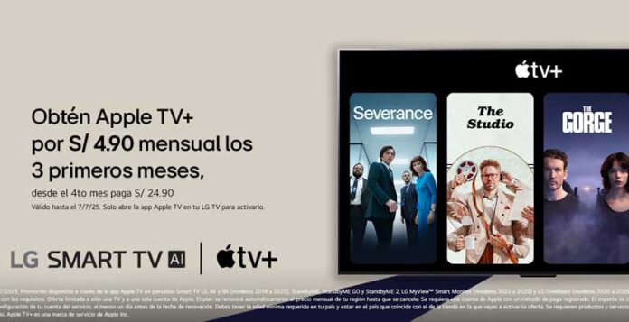 LG Electronics anuncia una promoción exclusiva para el mercado peruano: los propietarios de televisores smart LG podrán acceder de manera ilimitada a Apple Originals y a un extenso catálogo de series y películas por apenas S/ 4.90 mensuales.