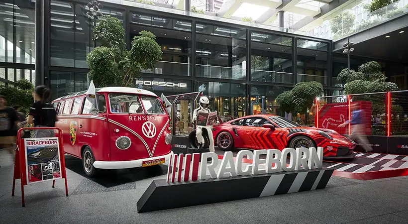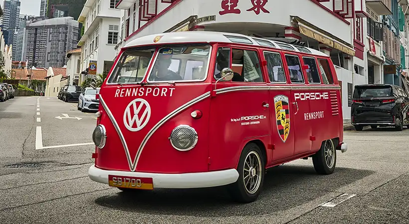 Este año, Porsche reimaginó ese espíritu con una Renndienst moderna que recorrió puntos emblemáticos de Singapur para distribuir ejemplares de Raceborn, una publicación gratuita de edición especial.