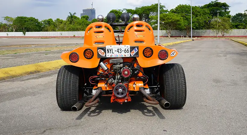 Este buggy, que tuvimos oportunidad de fotografiar, previa a la celebración de la Caravana del Día Mundial del Vocho, está equipado con un motor de 1600 cc que no solo ofrece confiabilidad, sino también un extra de personalidad gracias a varias modificaciones.