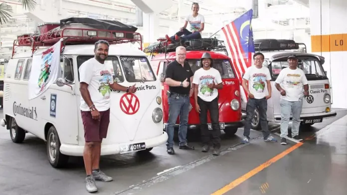 De esta forma, en el mes de marzo, cinco aficionados de Volkswagen decidieron comenzar un viaje apasionante de largo recorrido, con varios modelos emblemáticos de la marca: Cliften Nathaniel, Terence Moïses y Stephen Pang optaron por dos Combi T1 y una Combi T2, mientras que Monica Xavier y Udhaya Kumar optaron por un clásico Beetle.